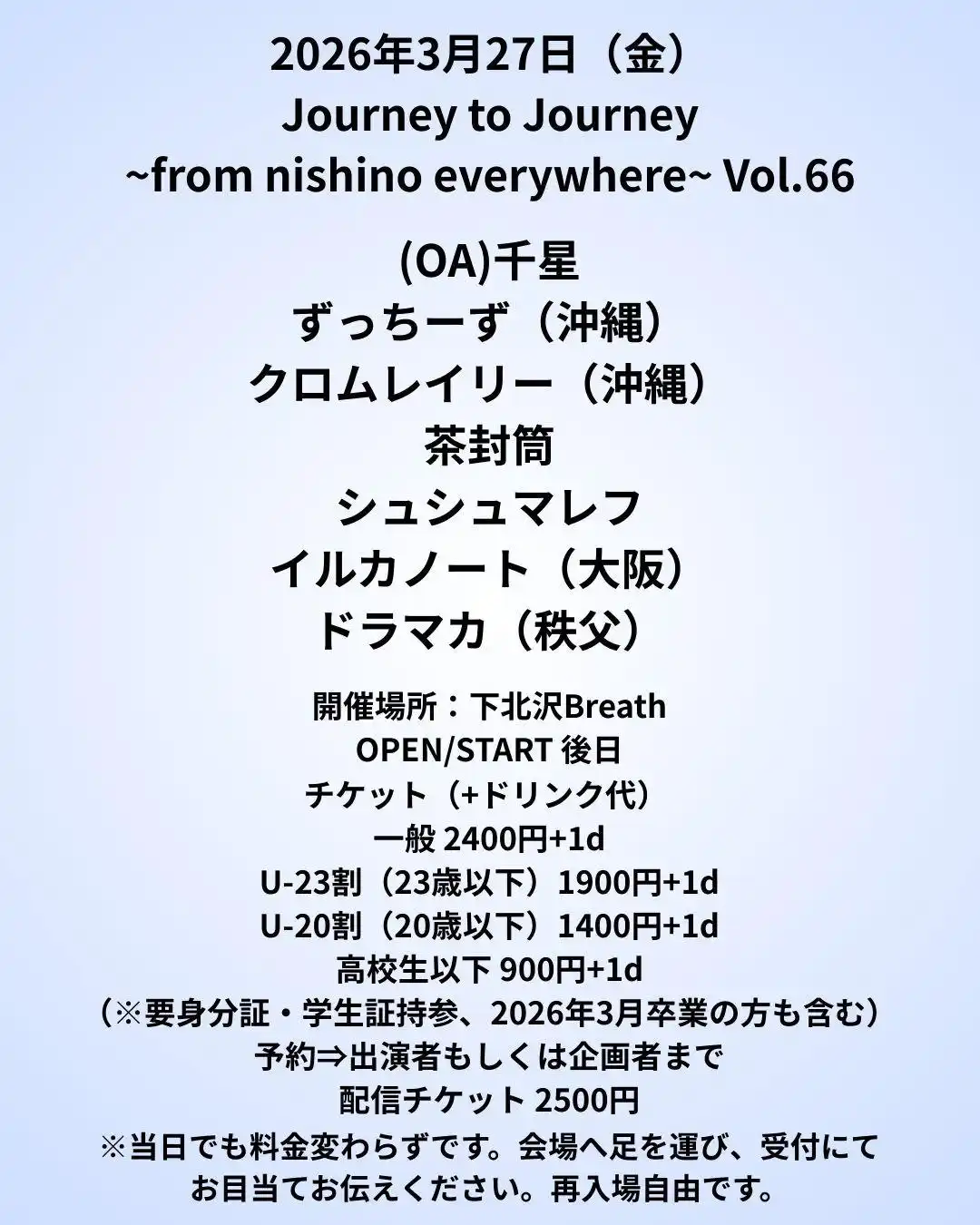 (要身分証・学生証持参、2026年3月卒業の方も含む) 予約→出演者もしくは企画者まで